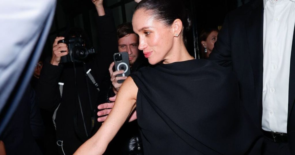 It’s a look we’ve never seen before from Meghan, who’s never shied away from black, but this iteration marked a bold new interpretation – darker, sharper, and infinitely more assured.