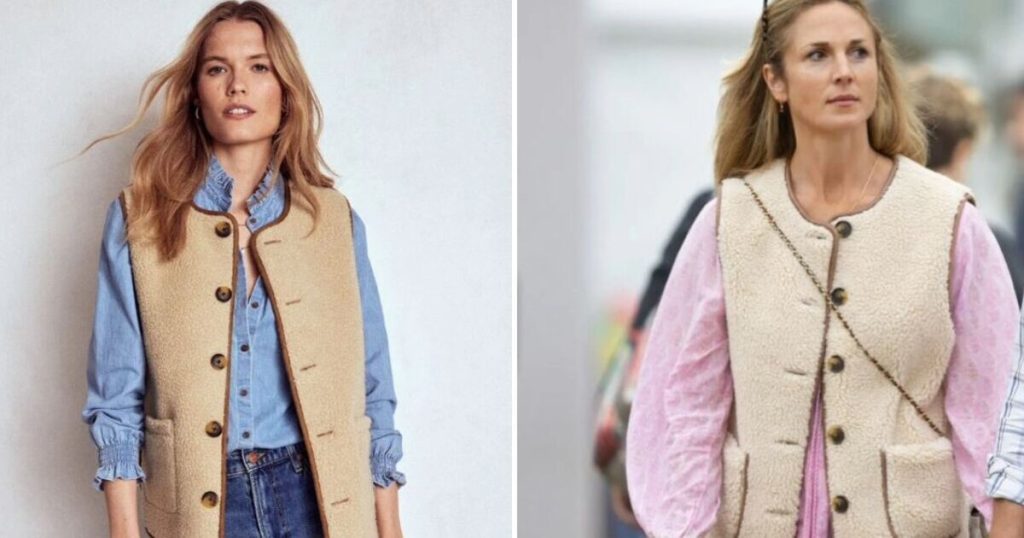 For a similar style, White Stuff’s loose-fitted Borg Gilet is currently on sale and reduced to £40 from £69. The oversized silhouette gives room for the wearer to style it with a chunky sweater. M&S’ Borg Button Through Gilet, £46, is designed in a regular fit, with a collarless neckline to create a pared-back, understated look.