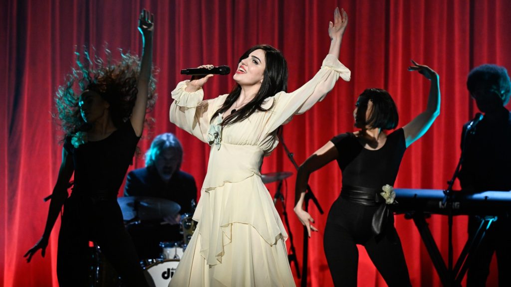 Cumming showcased the smoky, ’70s-inspired tune with the help of a live band and two dancers, who lent an ethereal quality to the performance. “I don’t do this to impress you/ I don’t wear this to undress you,” she croons on the self-confident song. “I don’t need you to define me/ Or approve of what’s inside me.”